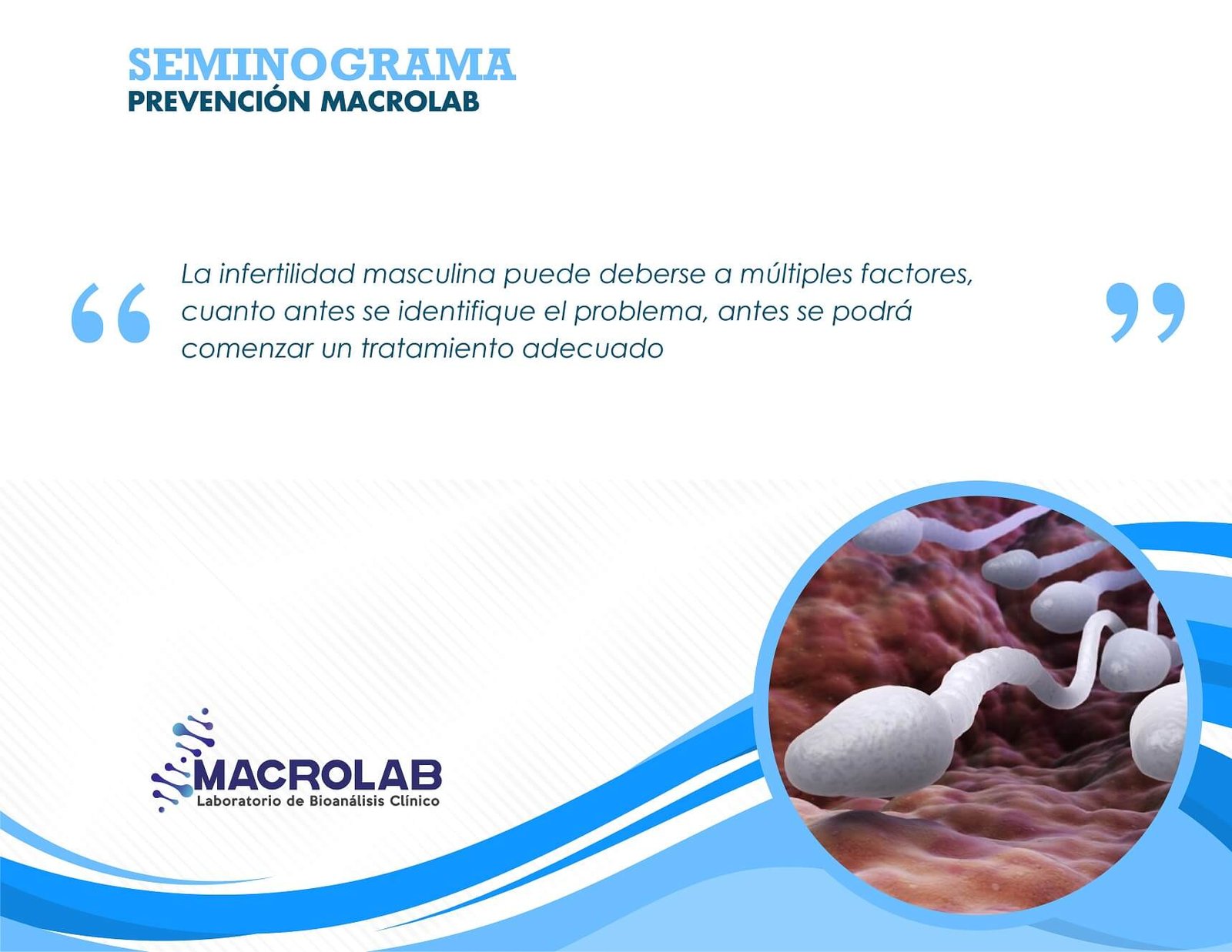 El Seminograma o Espermiograma consiste en un estudio de diferentes factores que pueden determinar la fertilidad masculina, como el color, la viscosidad, el número de espermatozoides, el volumen, la movilidad… El estudio del semen tanto cualitativa como cuantitativamente a nivel Macroscópico y Microscópico, permite evaluar la fertilidad masculina.
