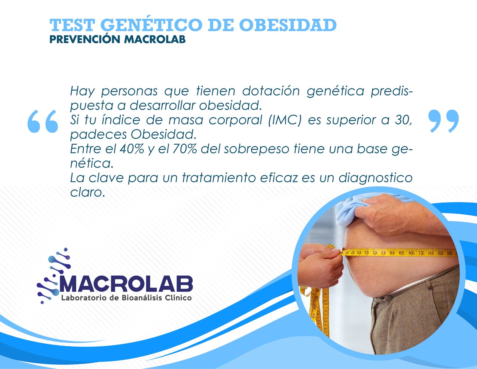 La obesidad es una enfermedad multifactorial a la que contribuyen una amplia variedad de factores genéticos y ambientales (metabolismo, ejercicio, hábitos alimenticios, ingesta, etc). El panel de obesidad detecta variantes genéticas asociadas a obesidad común y permite conocer qué proporción de la obesidad de una persona puede atribuirse a factores genéticos y cuál va a ser su respuesta a diferentes opciones de tratamiento. El resultado permite elegir la intervención dietética de mayor probabilidad de éxito para cada paciente. Proporciona un mayor entendimiento de la obesidad por parte de los pacientes, lo que contribuye a una mejor adhesión al tratamiento. Establece objetivos realistas al aproximarlos al índice de masa corporal (IMC) óptimo para cada paciente.