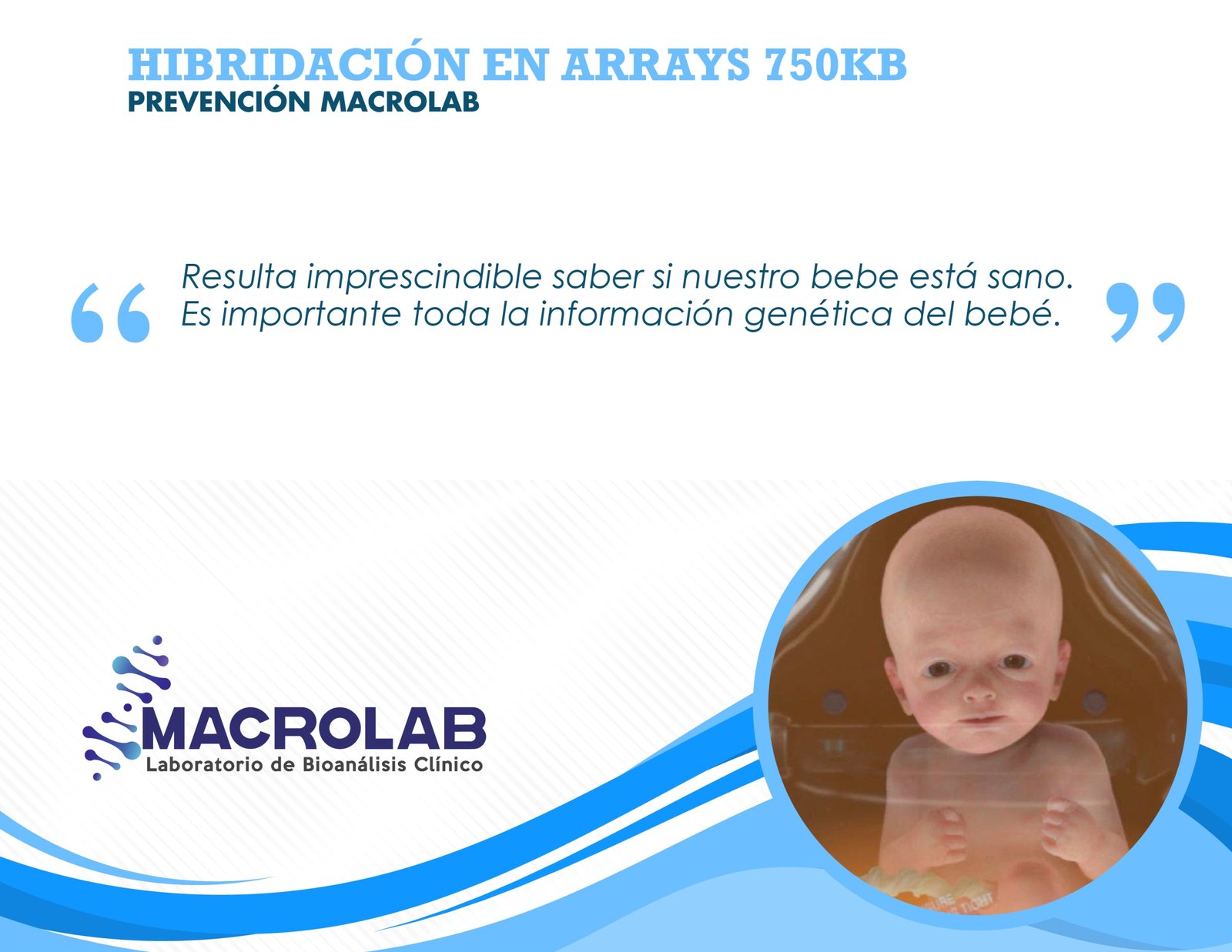 Análisis de deleciones y duplicaciones de DNA cromosómico para la evaluación de múltiples anomalías congénitas, especialmente de trastornos de desarrollo, retraso mental y autismo. El estudio se lleva a cabo mediante Hibridación genómica comparada (CGH) con un array de 750,000 sondas de DNA (CytoScan HD-750K de Affymetrix). (La técnica del array CGH no permite detectar pérdidas y/o ganancias de material genético de una resolución inferior a la especificada. Asimismo tampoco es posible detectar reordenamientos cromosómicos equilibrados, poliploidías y alteraciones en mosaico inferiores al 20%. Además la ausencia de cobertura de las regiones centroméricas repetitivas, hace que esta técnica no permita la caracterización de cromosomas marcadores formados únicamente por heterocromatina centromérica).